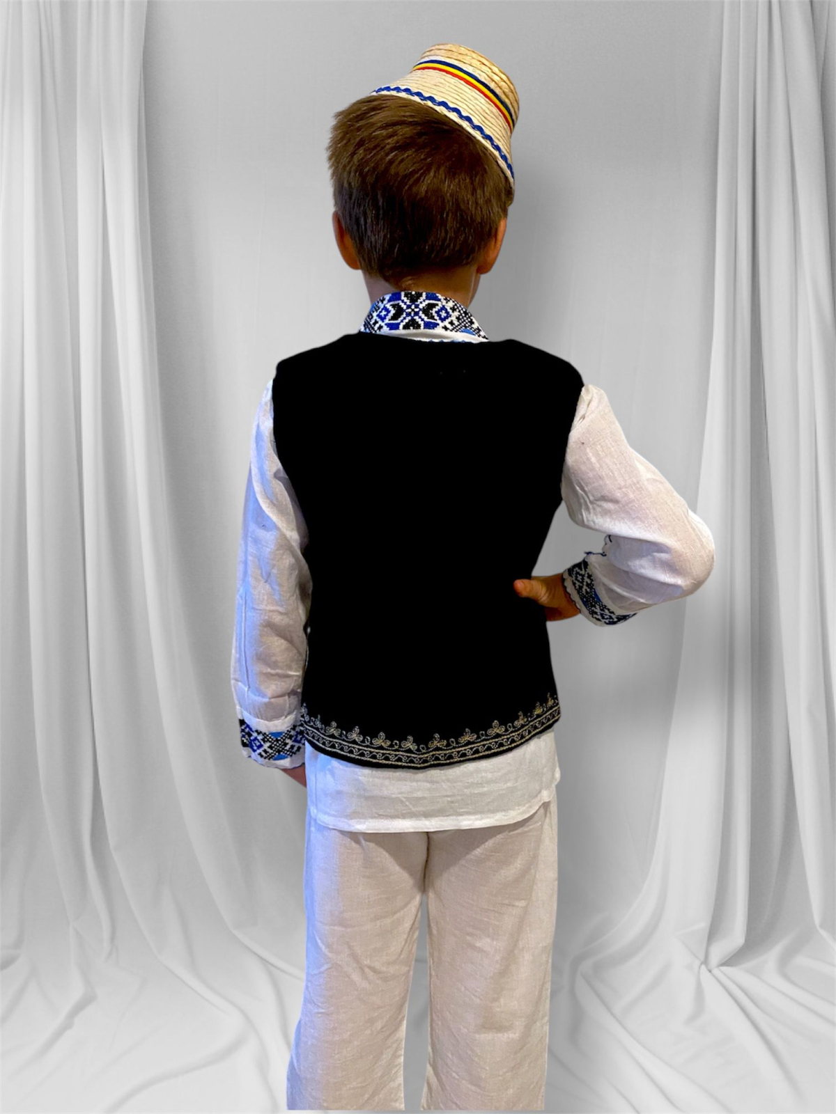Îmbină tradiția cu stilul modern cu această vestă națională pentru băieți, perfectă pentru evenimente speciale sau pentru a adăuga un strop de autenticitate în garderoba celor mici. Realizată din materiale de calitate, cu un design inspirat din tradițiile populare, această vestă aduce un plus de eleganță și rafinament oricărei ținute.