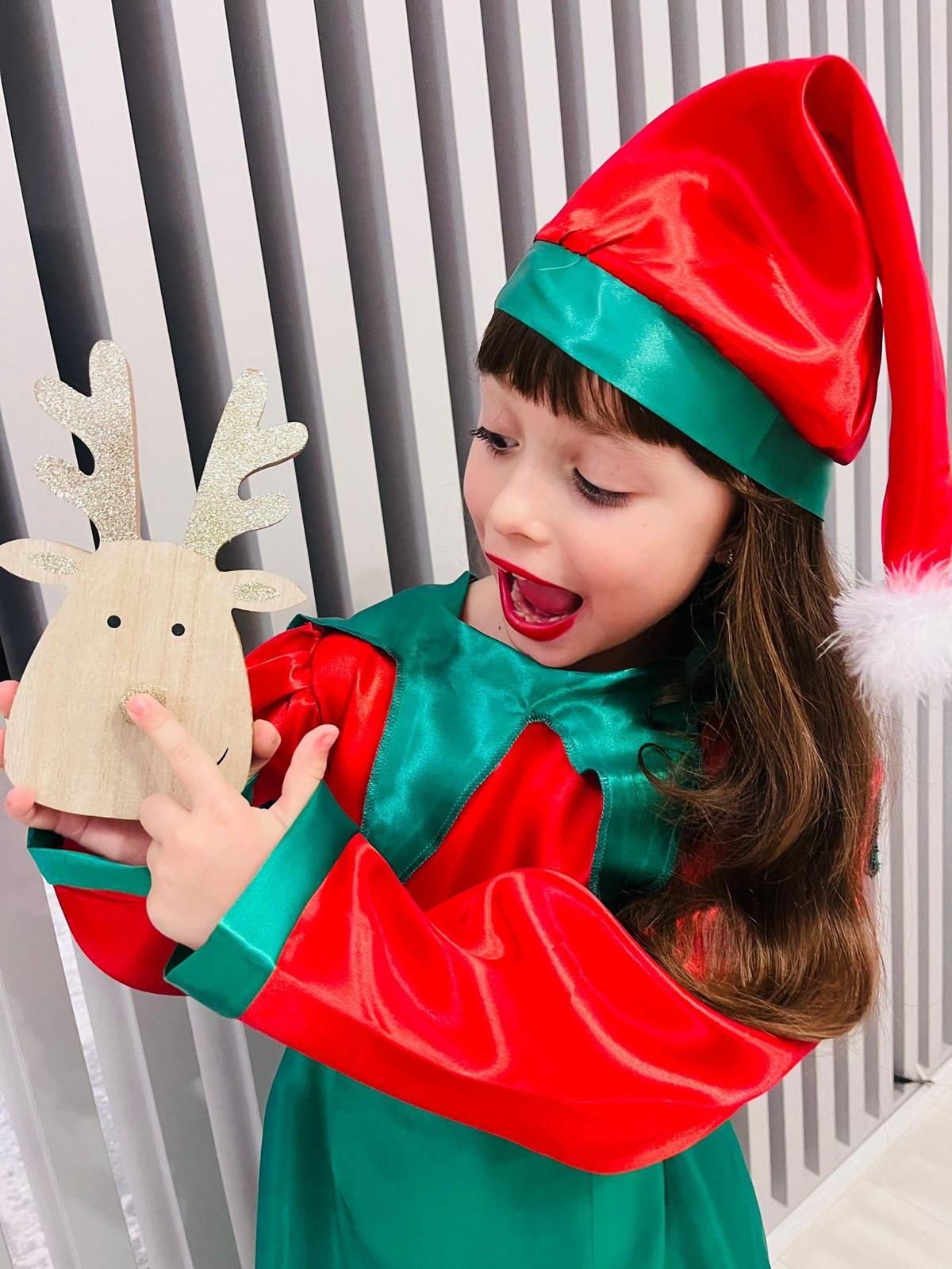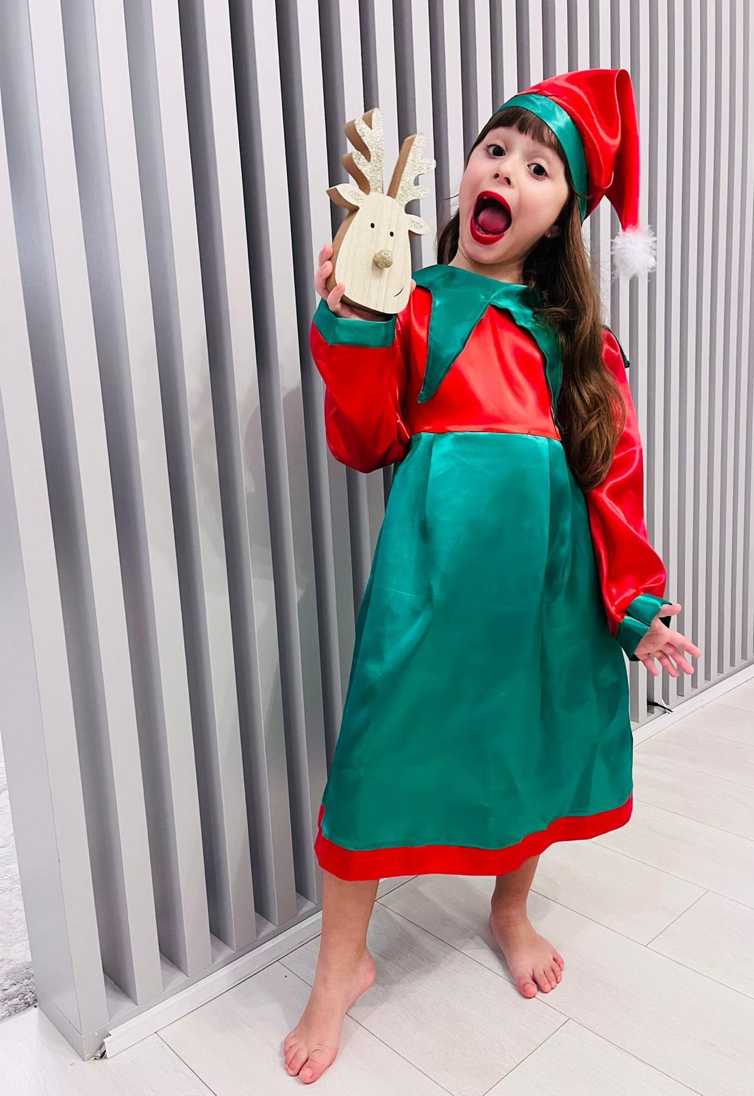 Costum baiat Spiridus, rosu si verde, cu tematica de Craciun