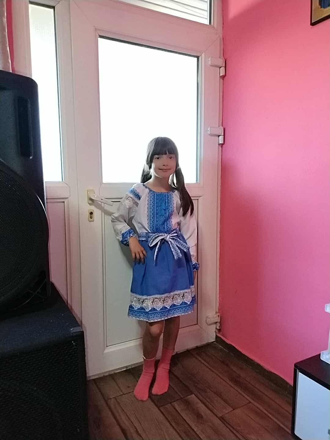 Costum traditional fetita Eliza (ie + fusta + brau). Broderia este cusuta la masina