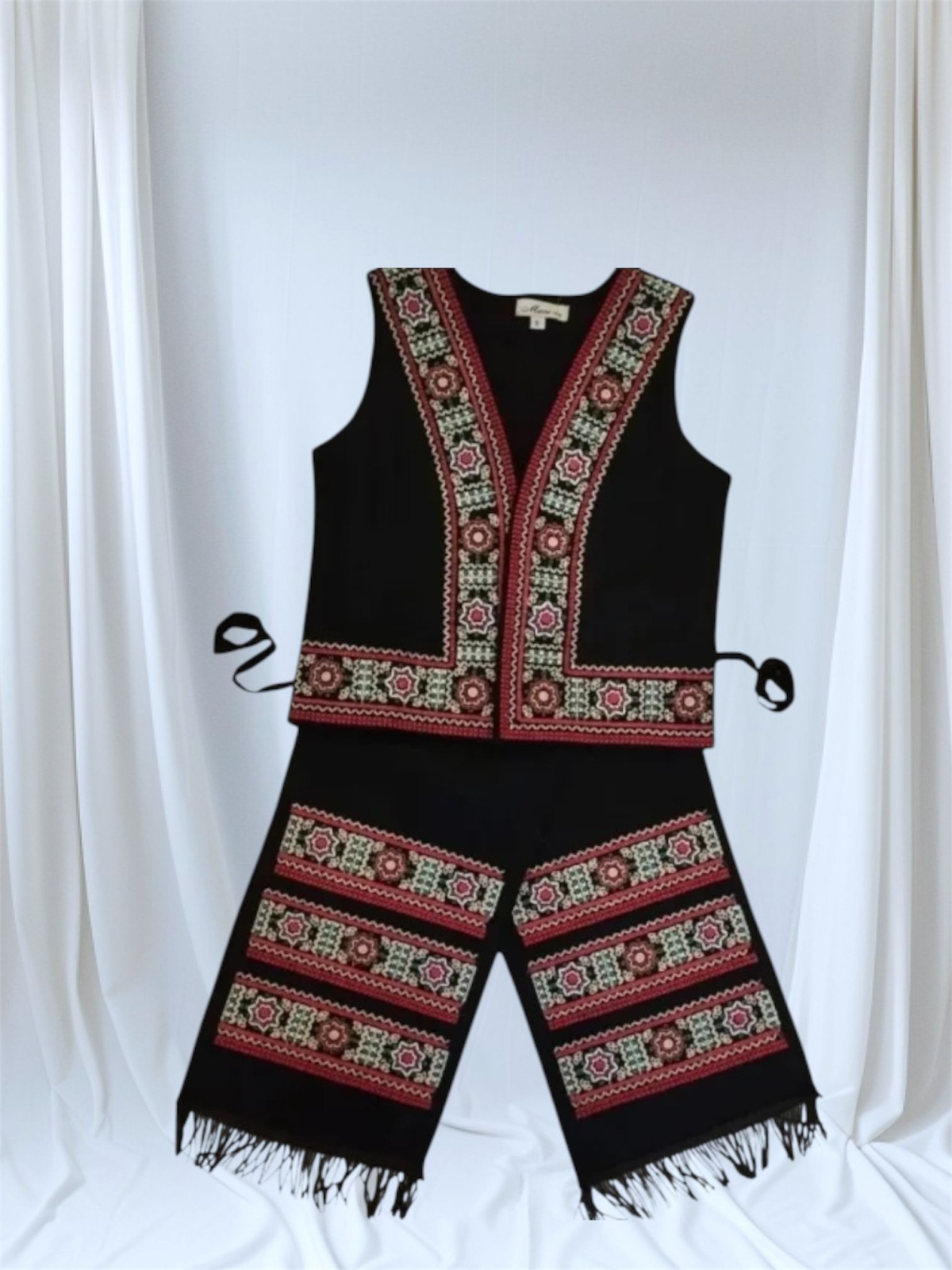 Set vesta + sorturi Fota, din lana, cu model traditional, pentru fete